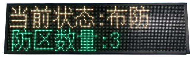 功能描述:1.LED電子屏 F3.75 雙色顯示,豪華大氣,直觀,适合所有場(chǎng)所。2.兩行字體顯示,可以顯示在線防區數量,公司LOGO 當前狀态 ,報(bào)警防區3.安裝方式:挂裝......